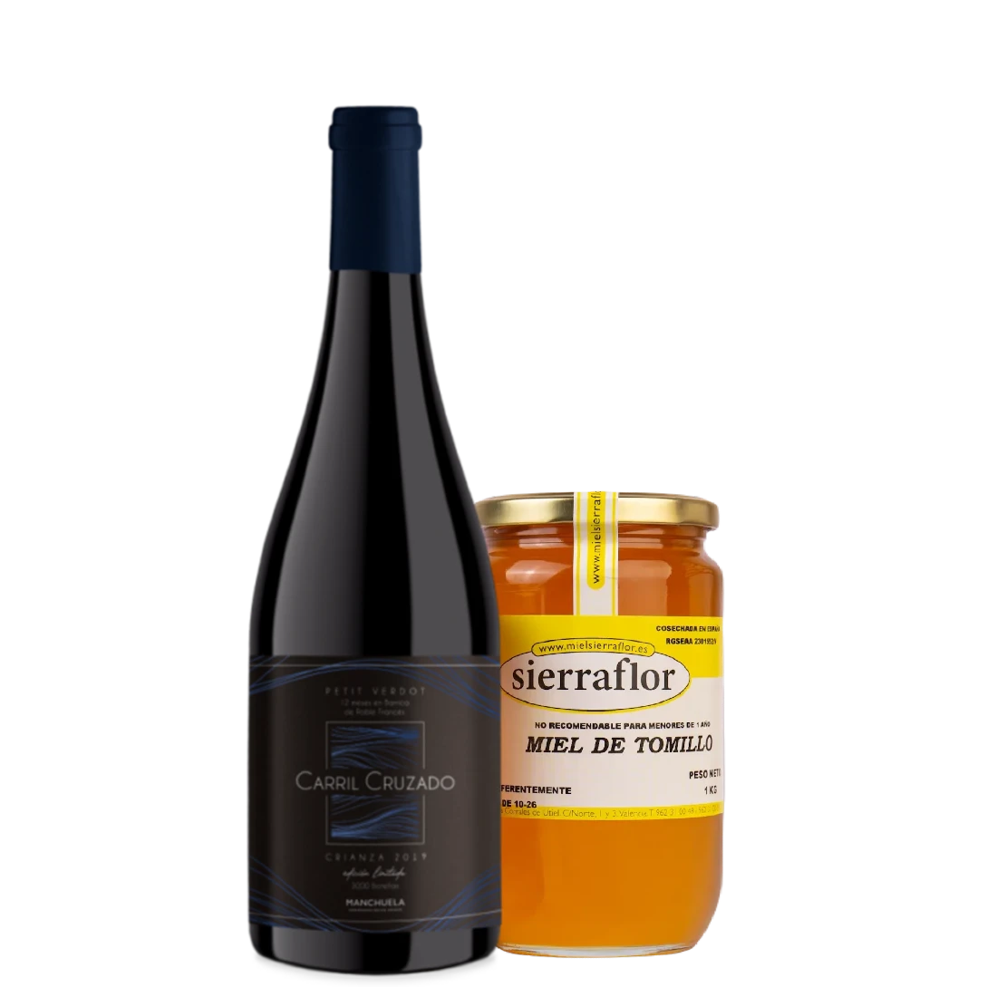 Diseñado para exploradores del sabor, este dúo ofrece una experiencia dinámica donde la acidez y el dulzor intenso se encuentran en un ciclo de sabor y frescura. El vino, Carril Cruzado Petit Verdot Crianza, es un monovarietal que sorprende por su equilibrio y marcada personalidad. Con notas de ciruela negra, regaliz y apuntes balsámicos de eucalipto, es jugoso y con una acidez muy buena. Su pareja es la Miel de Tomillo, una miel de color ámbar claro, con un sabor dulce con una nota ligeramente ácida y un aroma intenso.
